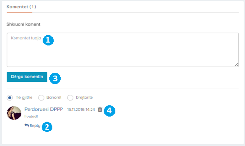 1. Shkruaj koment të ri për regjistrimin të cilin e keni hapur