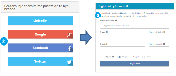 2. Krijo llogari të re përmes rrjeteve social duke zgjedhur ikonën përkatëse të rrjetit social, a. Plotësoni të gjitha fushat që janë të obligueshme dhe tjerat nëse ju dëshironi